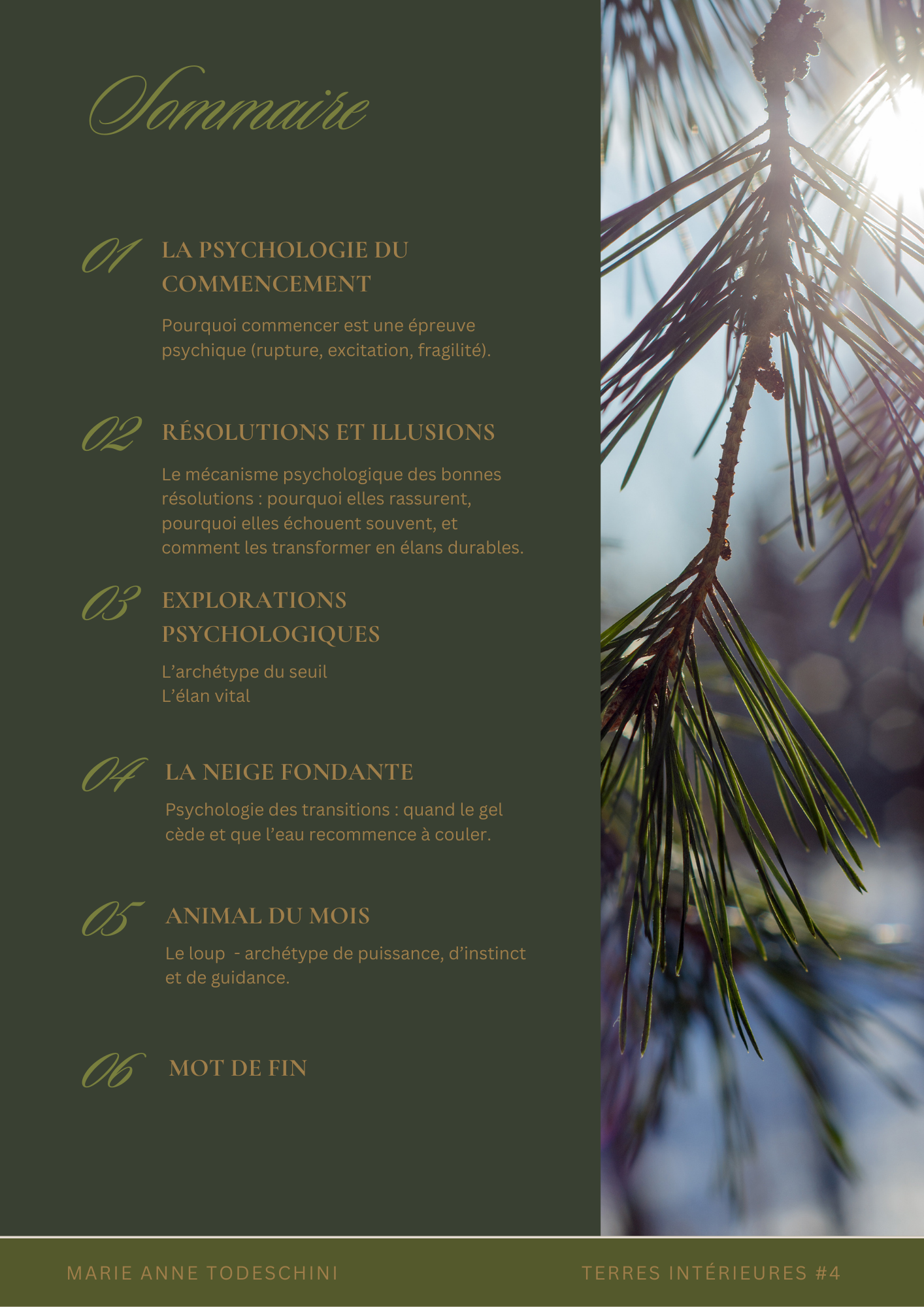Le mois de janvier ouvre un espace unique : celui des recommencements, et avec ce nouveau numéro du magazine Terres Intérieures – Janvier 2026, plongez dans une exploration profonde du psychisme hivernal, des mécanismes du renouveau et de la façon dont la psyché humaine se transforme au cœur de l’hiver.